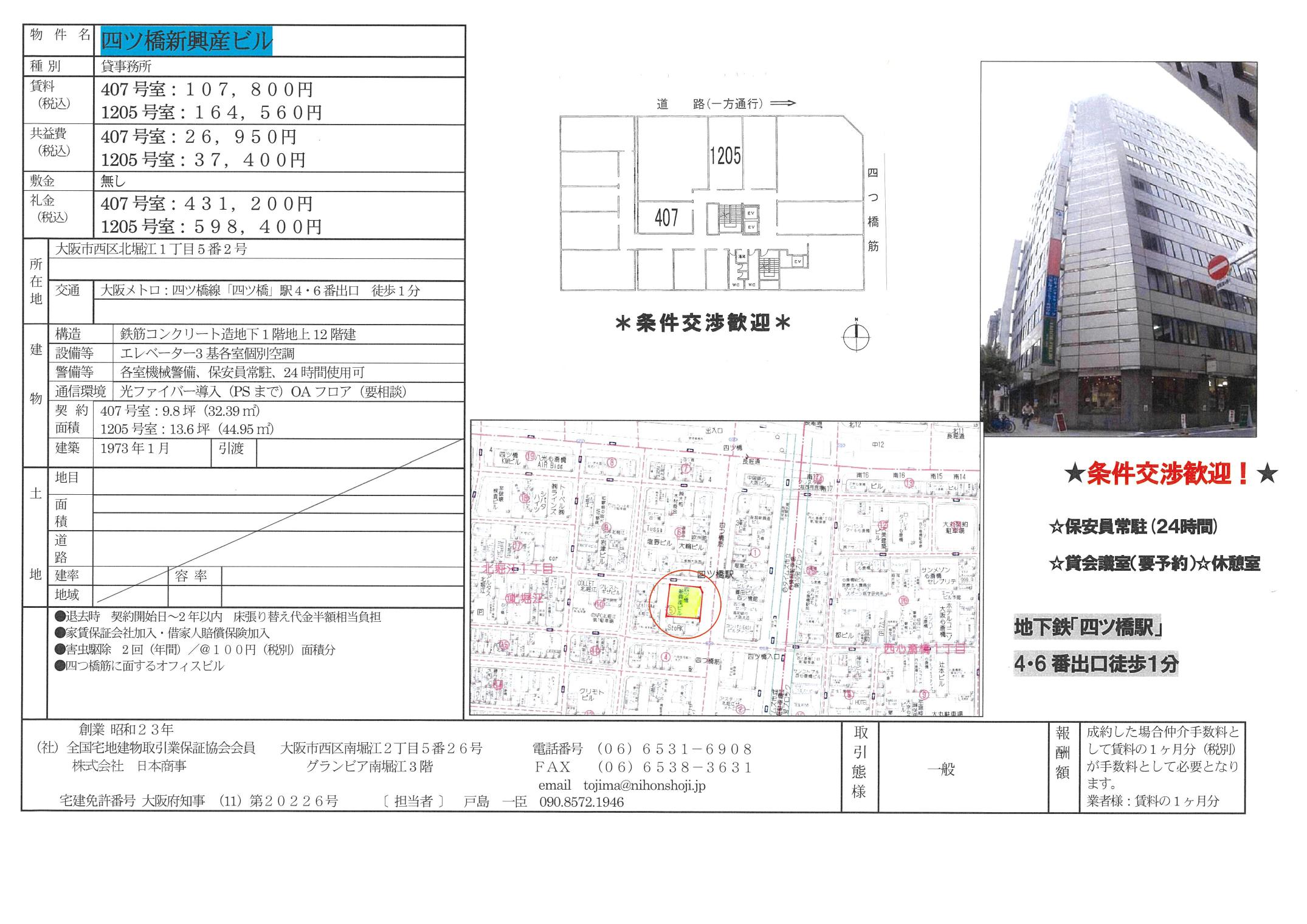 大阪メトロ四つ橋線「四ツ橋」駅4・6番出口 徒歩1分